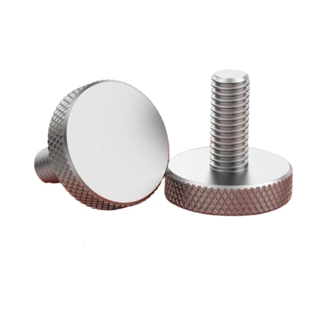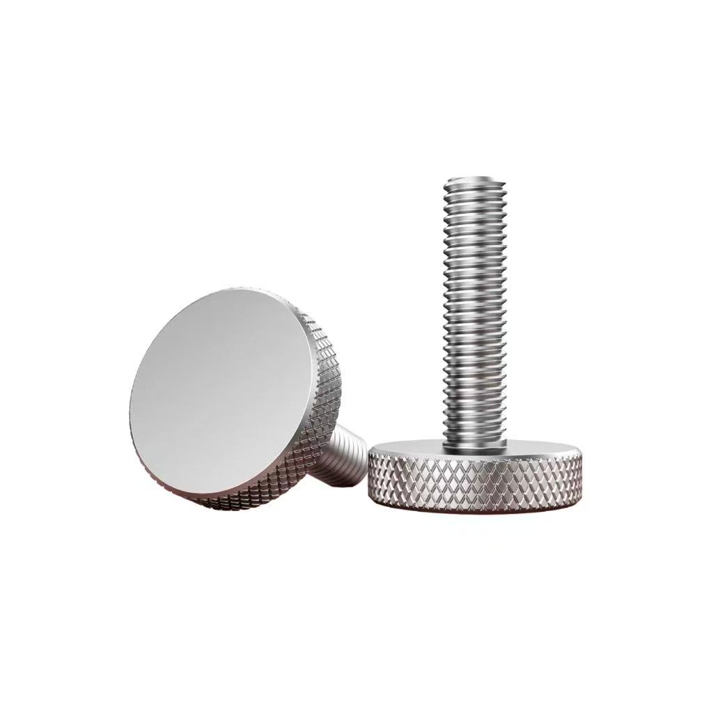 The flat - head design of the knurled flat - head screw makes the surface relatively flat after installation, and will not protrude too much, which is suitable for some occasions where the surface flatness is required. The knurling treatment on the surface increases the friction, making it easy to tighten or loosen by hand without tools, which is convenient to operate. Moreover, it has high dimensional accuracy, which can ensure a good fit with nuts or connected parts.